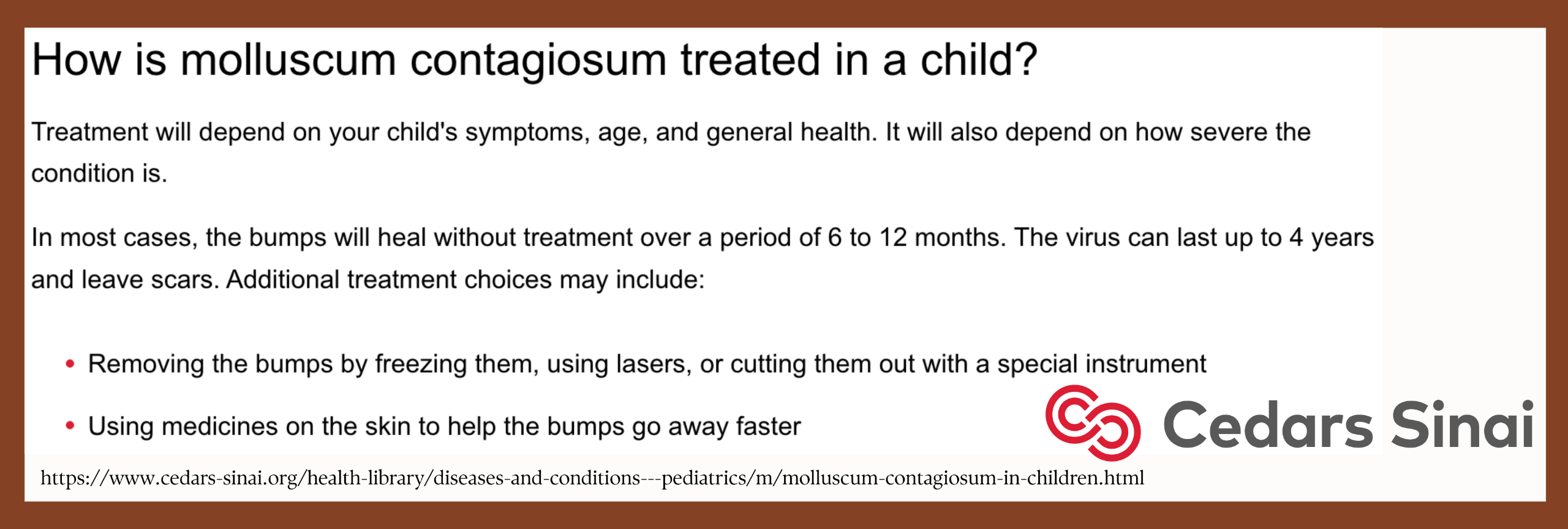 Before I share my experience, it’s important to understand what reputable medical sources say about molluscum contagiosum.